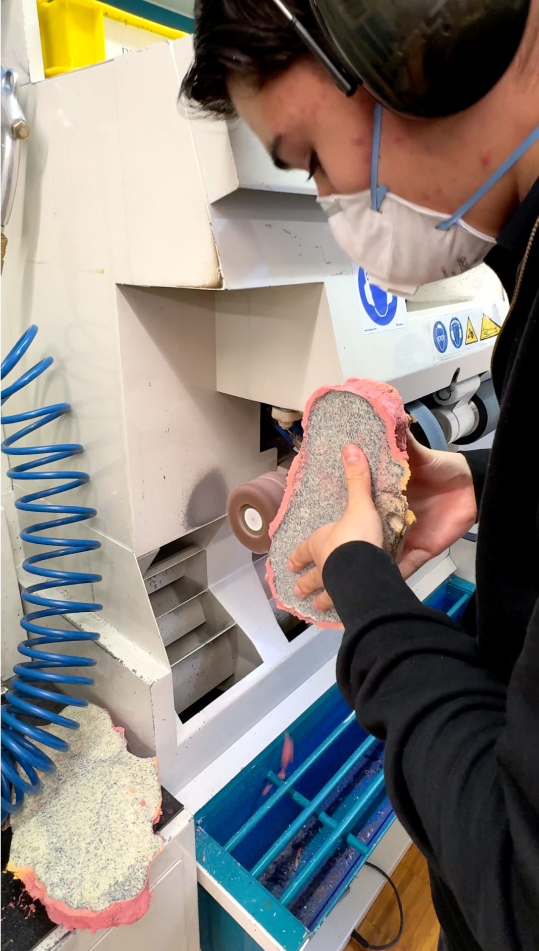 Tout commence par un geste étonnamment simple. La personne plonge ses pieds dans des blocs de mousse. Plus de mètre ruban, pas de mesure au centimètre près, mais une empreinte capturée, un volume en trois dimensions d’une précision « au top ». Dans cette mousse, chaque relief, chaque creux, chaque déformation s’inscrit comme une vérité qu’on ne peut plus maquiller. Tiago y voit un point de départ réel : on ne négocie pas avec la forme d’un pied, on la respecte. Quand la résine vient ensuite remplir cette cavité pour devenir un positif, un avatar (non digital) du pied, le patient n’a plus besoin de rester là. Son double en résine, lui, reste sur l’établi. C’est sur ce témoin silencieux que tout le travail va se jouer.