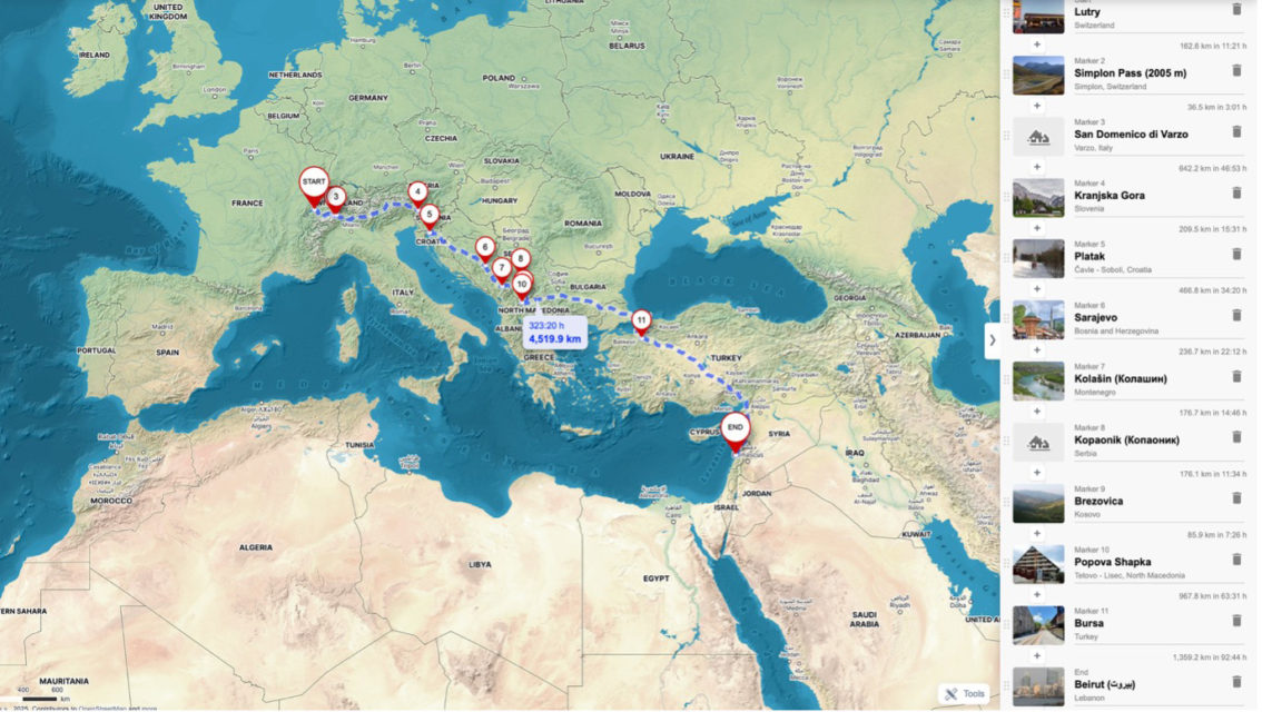 Au Monténégro, il profite à nouveau pour chausser les skis, comme dans tous les pays traversés précédemment : « Ce n’est pas de la grande poudreuse, mais ça reste du bon ski ». Puis Guy poursuit vers le Kosovo et la Macédoine du Nord où « Les gens sont d’une gentillesse désarmante ». Il y découvre le cat skiing : un engin de damage remplace les télésièges et c’est freeride à la descente ! En Grèce, les routes sont plus clémentes, tout comme les températures : « Le ski n’est pas vraiment dans la culture du pays, mais j’ai croisé deux retraités bulgares qui randonnait comme moi et appréciaient les quelques centimètres de neige poudreuse tombés le jour d’avant. »