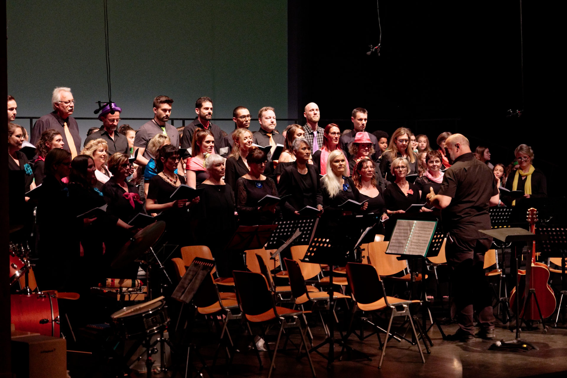 Le 1er juin, c’était au Théâtre du Jorat que les élèves du Raffort principalement, avaient donné rendez-vous à un nombreux public. Dans une mise en scène parfaitement maîtrisée se sont succédé les chœurs des 7-8P et celui des 9-11S, l’orchestre des 9-11S et le groupe vocal des enseignants, ceci pour le côté musical de la soirée. S’intercalaient des extraits littéraires lus par quelques élèves et par une comédienne vaudoise, Sophie Gardaz. Des saynètes jouées par les élèves du cours « théâtre » figuraient aussi au programme. Des portraits d’artistes de chez nous défilaient sur écran géant.