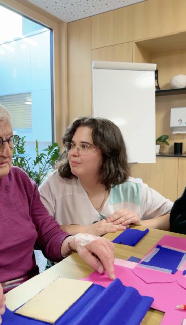 Marie crée, supervise ou accompagne lors des animations : ateliers bricolage, activités motrices, jeux des sens. En ce moment, c’est la grande préparation du Carnaval de Bulle. Lanternes multicolores et confettis géants vont égayer les locaux du foyer. Une décoration réalisée à plusieurs. Chacun met la main à la pâte, selon ses ressources, des refrains aux bouts des lèvres et via pas mal de fou-rire aussi.