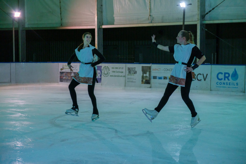 Sous les conseils de leur professeure et comédienne Zina Balmer, les deux passionnées ont créé de toute pièce ce spectacle : « Nous travaillons sur ce sujet depuis janvier », détaille Liv Tombez avant que sa duettiste ne renchérisse : « Mais quel bonheur de partager ces moments avec le public et de faire vivre cette patinoire ». Une passion qui ne s’arrête pas à la performance car, pour Maëlle Ledermann, il s’agit bel et bien d’une vie : « J’ai récemment déménagé en France, car je ne trouvais pas de partenaire ici. J’ai fait cinq heures de voiture avant d’arriver à Oron. »