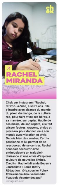 Texte et photos Sonia Biétry | Rachel Miranda Becerra, 16 ans, nous ouvre son atelier secret. Le dessin, essentiellement inspiré par la culture manga ou rap, est devenu son outil vital pour survivre au stress scolaire, aux notes et aux devoirs oppressants qui ponctuent certaines périodes.