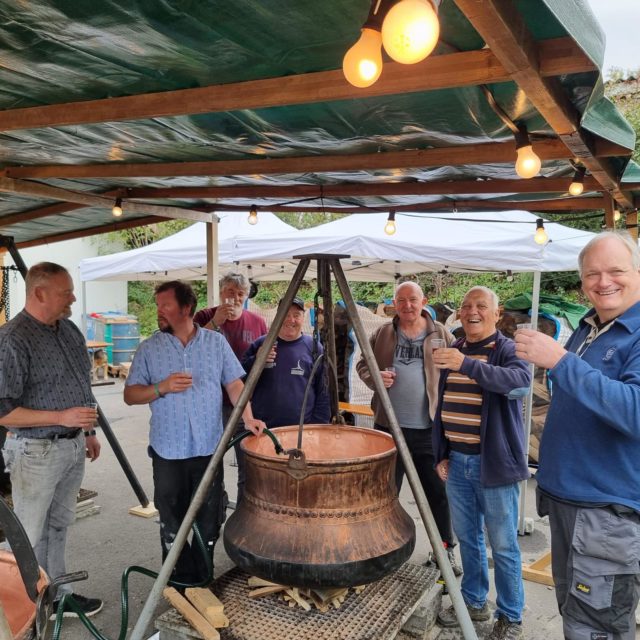 Dès jeudi midi, les bénévoles, qui auront été chercher et installer les trois chaudrons dans lesquels mijoteront le jus des poires variété Louise Bonne, du Valais, seront prêts à accueillir les visiteurs dans le petit chalet extérieur servant de buvette. Ils proposeront des boissons, dont le vin chaud qui réchauffe les doigts et les cœurs. Ce sera également l’occasion de comprendre la transformation du jus en vin cuit, l’importance de la « tune » qui tintinnabule dans le chaudron, le coup d’œil du professionnel et la mise en bouteille qui interviendra vendredi. Entre 15 heures et 24 heures, en fonction de la météo, sont nécessaires à l’aboutissement du processus, un long laps de temps au cours duquel chaque visite sera appréciée par les veilleurs. Les quelque 140 pots de 50 cl seront vendus à Fr. 13.-. « Un prix inchangé malgré l’inflation, tout comme ceux des boissons et des menus » relève Francis Zbinden, qui prend les commandes préalables au 079 439 83 31. La demande étant importante, il est conseillé de réserver son pot, qui sera mis de côté et à disposition le samedi au Marché du Terroir.