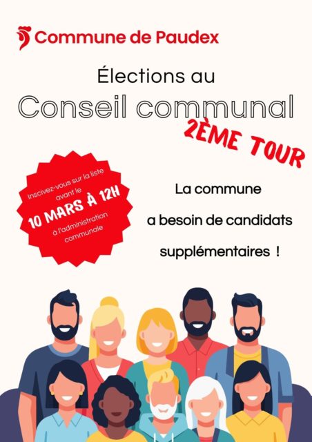 Inscrivez-vous sur la liste disponible auprès du greffe communal d’ici au 10 mars à 12h dernier délai. Votre engagement compte pour l’avenir de notre commune.