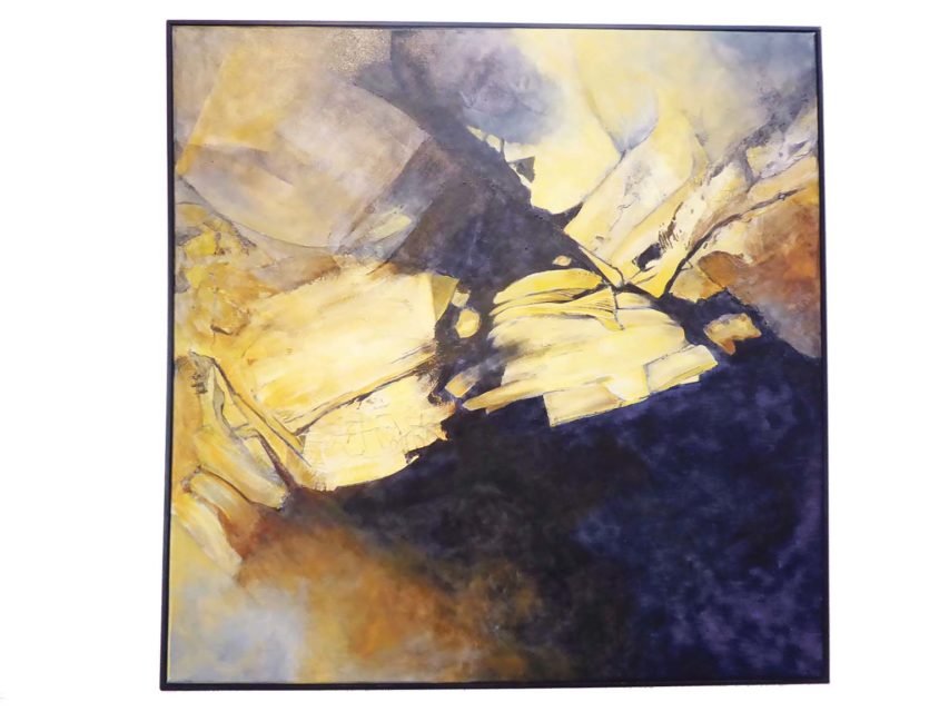 Pierre Jeanneret | Dans l’espace lumineux de l’espace p’ARTages à Savigny, Solange Ringger nous a dit : « C’est pour fêter mes 70 ans que je m’aventure à exposer mes peintures. » Elle a eu raison, car son exposition révèle un réel talent. Sa vie a suivi un parcours intéressant. Née à Lausanne en 1951, elle est entrée en 1968 à l’Ecole des Arts et Métiers de Vevey, en section décoration-étalage. Un goût qui ne la quittera pas, car elle a toujours aimé bricoler dans son appartement, s’essayant à divers procédés tels que le serti, une technique de peinture sur soie permettant par exemple de décorer des foulards. Pourtant, en 1980, elle a opéré une reconversion professionnelle complète, entreprenant une nouvelle formation en ergothérapie, spécialisée en pédiatrie et en orthopédie, métier qu’elle a exercé avec passion pendant trente ans, en milieu hospitalier puis en privé. Mais revenons à son exposition ! Si ses peintures figuratives presque hyperréalistes convainquent moins, on sera séduit par la force qui se dégage de ses peintures abstraites. Certaines sont en lien direct avec le Covid, telle cette forme de vague gigantesque qui semble vouloir tout submerger, un peu comme celles peintes jadis par Courbet et Hokusai. D’autres laissent libre cours à notre imagination, même si leurs titres laissent entendre un lien avec la pandémie. Par exemple : « D’un côté les pestiférés, les plus de 65 ans, vieux, fragiles, quasiment responsables de cette situation et de l’autre côté les autres », ou encore : « On croyait que c’était derrière nous ». On remarquera d’abord plusieurs petits tableaux carrés à dominante bleue, parcourus par un trait jaune vif. D’autres tableaux, plus grands, sont remarquables par le jeu des formes et des couleurs, ainsi que par la force qui s’en dégage. Certains d’entre eux présentent un léger relief, obtenu grâce à des pâtes. L’artiste utilise diverses techniques, créant parfois un «craquelé» sur la toile. L’exposition de Solange Ringger conjugue donc unité et diversité. Petit détail qui a son importance : on relèvera les prix bas des œuvres exposées, qui sont ainsi accessibles à tout un chacun. On profitera de la visite des lieux pour admirer aussi les bijoux créés par Lucie Weber, la propriétaire de la boutique qui fait aussi office d’espace d’exposition. Ils séduisent par leur sobriété, la variété des matières utilisées (céramique, métal, boutons anciens) et leur inventivité. Voilà donc une double raison de faire le déplacement à Savigny !