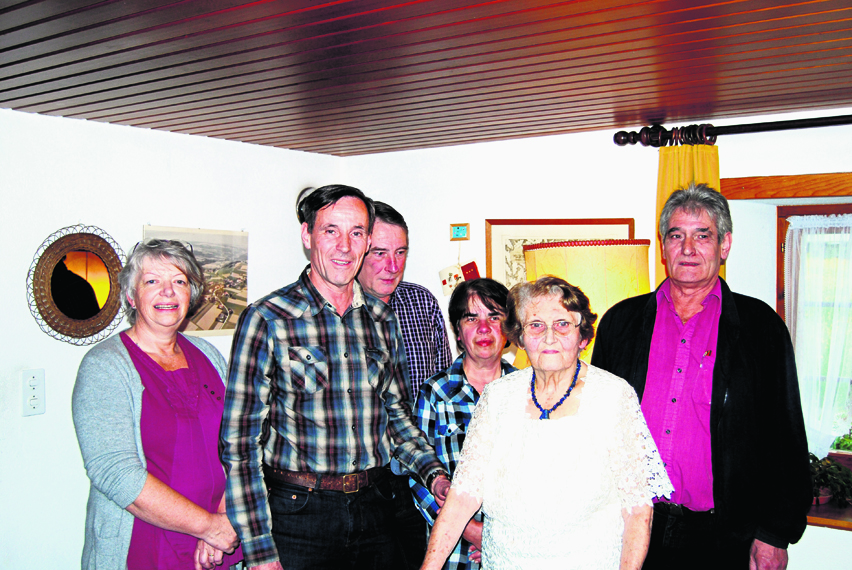 Pour la Municipalité, Nicole Matti, secrétairé | C’est le vendredi 8 mai 2015 en fin de journée que la Municipalité s’est rendue au domicile de Marcelle Stettler, pour fêter ses 90 ans et lui...