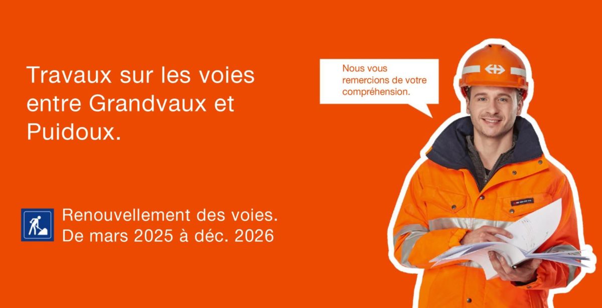Diane Zinsel | Le chantier, qui s’étendra jusqu’au 13 juin, prévoit de renouveler les traverses, les rails et le ballast sur 6,5 kilomètres entre les tunnels ferroviaires de Grandvaux et de Puidoux, indiquent les CFF. Durant ce laps de temps, les trains ne pourront circuler que sur une seule voie, limitant la capacité de la ligne. Passagères et passagers devront donc faire face à des changements d’horaires et des suppressions de trains.