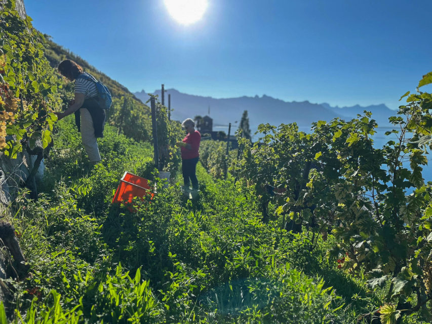 Jeudi 18 septembre, sous un soleil radieux, Laurence Negro-Cochard, secrétaire municipale à Saint-Saphorin, Jean-Claude Chevalley, municipal en charge des affaires sociales, et une poignée de bénévoles s’activaient de bon matin dans les vignes. Leur mission ? Récolter les plus belles grappes du domaine afin d’en faire des barquettes, d’environ un kilo et d’aller de maison en maison pour les apporter. Cette année, 80 kilos ont été récoltés en moins d’une heure, « le raisin est magnifique, il y avait moins de tri à faire donc c’est allé plus vite. C’est aussi des personnes qui l’avaient déjà fait, car c’est un peu plus technique que les vendanges classiques ; il faut prendre les belles parties. Cette année, j’avais aussi prévu un peu plus de monde, pour avoir plus de plaisir à le faire », mentionne Laurence Negro-Cochard. Une fois la récolte terminée, il a fallu préparer les barquettes et se répartir les foyers du village. Par groupe de deux, la petite dizaine de bénévoles a rendu visite à une quinzaine de personnes chacun.